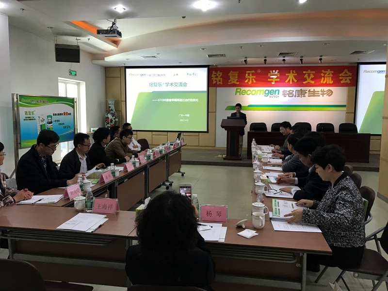 最后,由銘康生物市場(chǎng)部經(jīng)理何光夫?yàn)樵谧鶎<医榻B了銘復(fù)樂(lè)產(chǎn)品知識(shí)及使用概況。銘復(fù)樂(lè)(rhTNK-tPA)是STEMI患者溶栓治療的最優(yōu)選擇。因?yàn)殂憦?fù)樂(lè):?jiǎn)未戊o推,持久有效,特異性強(qiáng),血管開(kāi)通率高、安全性佳。