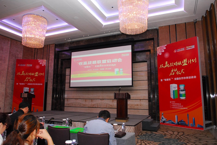2014年11月26日,公司歷經(jīng)十余年潛心研究并成功開發(fā)的首個重磅產(chǎn)品——第三代溶栓藥銘復(fù)樂®全國招商會在廣州四季酒店隆重召開。楊琴總經(jīng)理代表銘康生物在大會致辭,介紹銘復(fù)樂®的研發(fā)歷程,推出 “一三五”戰(zhàn)略發(fā)展規(guī)劃,即一年內(nèi)產(chǎn)品投放市場,三年內(nèi)其治療腦梗死和肺栓塞的新適應(yīng)癥完成臨床試驗,五年內(nèi)銷售額突破十億元大關(guān)。