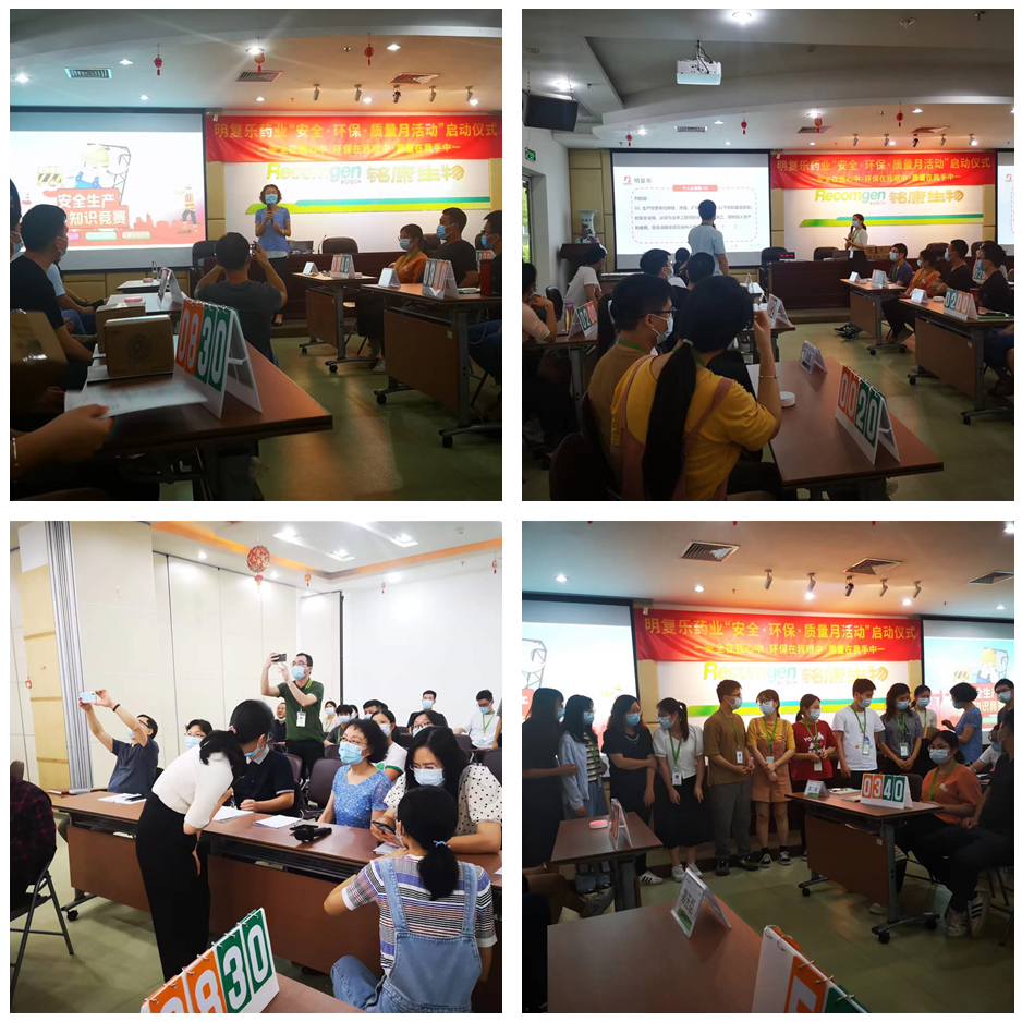除隱患遏事故,宣傳與整治并重。活動期間,除了豐富多彩、接地氣的安全宣傳活動外,公司還組織了安全生產(chǎn)知識競賽,內(nèi)容涵蓋安全、GMP基礎(chǔ)知識和環(huán)保相關(guān)內(nèi)容,充分調(diào)動了全體人員參與安全質(zhì)量環(huán)保工作的積極性。